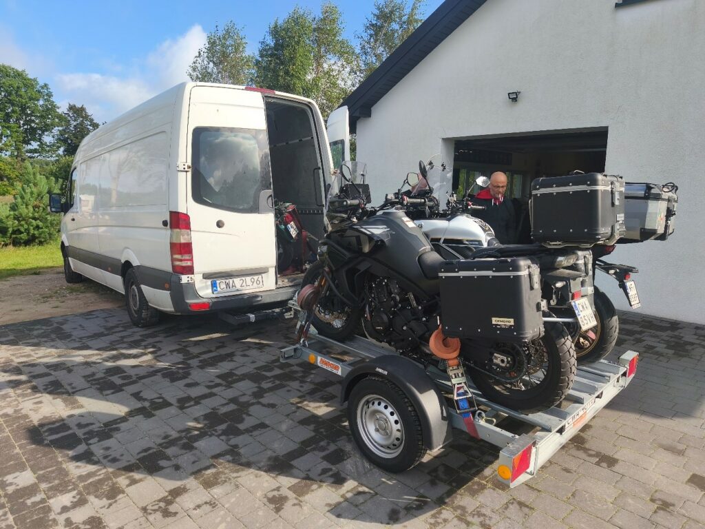 Radość nie trwała jednak długo, gdyż przejechaliśmy raptem 200 km, gdy zaczęły się problemy z samochodem. Automatyczna skrzynia biegów, psia jej mać zastrajkowała. Szczęście w nieszczęściu w Lęborku, gdzie mamy przyjaciół motocyklistów. Pomogli nam się dokulać do domu Mary. Również bardzo serdecznie pozdrawiam z tego miejsca.Przenocowała mnie i Waldiego, a od samego rana poszukiwanie mechanika i próba uruchomienia auta. Okazłosię, że to grubszy temat z jakimś tam sterownikiem i o jeździe tym autem gdziekolwiek możemy zapomnieć. W motocyklistach duch jednak nie ginie. Zaczęło się szukanie innego samochodu. Kilkadziesiąt telefonów później, Waldi się poświęcił dla grupy. Wsiadł w pociąg i wrócił do Wąbrzeźna. Tu pożyczył od kumpla samochód oraz małą przyczepkę motocyklową i wieczorem był z powrotem w Lęborku. Przepakowaliśmy sprzęty na nowy środek lokomocji.