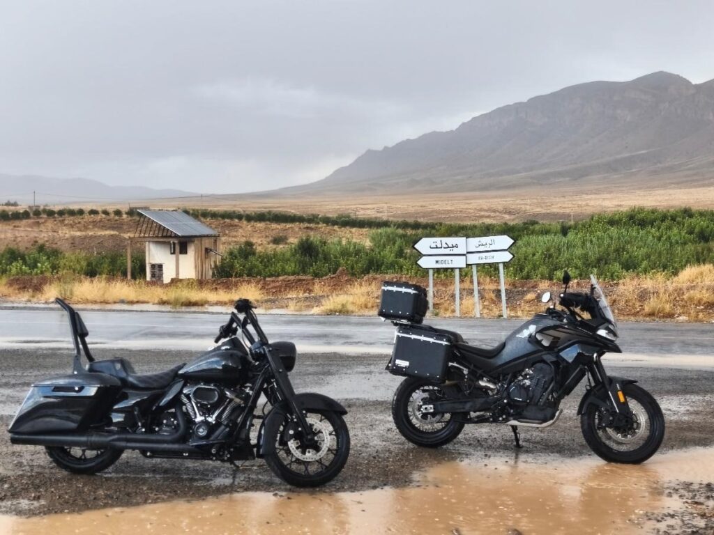 Nazajutrz po śniadaniu dosiedliśmy naszych jednośladów i wyruszyliśmy w dalszą podróż na południe w kierunku Midalt i dalej do Al-Raszijad. Im dalej na południe tym mniej turystów, a Maroko jest prawdziwe, bo nie jest na pokaz. W tych okolicach nie da się praktycznie spotkać kobiety bez Burki, Nikabu, a przynajmniej Hidżabu. Generalnie mało widać kobiet, ale trudno się dziwić, że są ukrywane, gdy wjeżdża do miasta ekipa sześciu chłopa na motocyklach. Jakby tego było mało ponad połowa z nich pokryta jest tatuażami, a facjaty mają niewyględne.